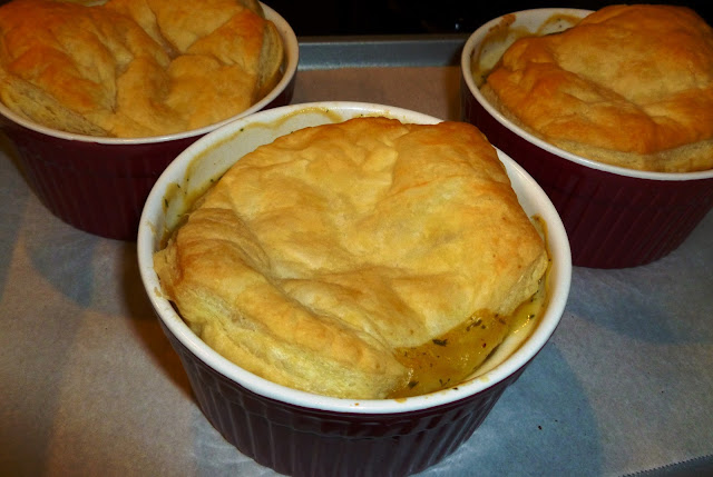 STEP THREE: heat oven to 375. Pam 6 large ramekins or small pie tins (3 1/2 inch round)